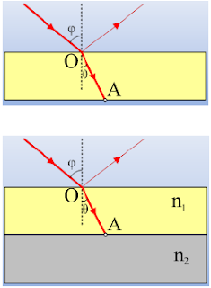 Μια μονοχρωματική ακτίνα φωτός προσπίπτει υπό γωνία φ σε μια γυάλινη πλάκα Α με δείκτη διάθλασης n1. Η διαθλώμενη φτάνει στο σημείο Α.